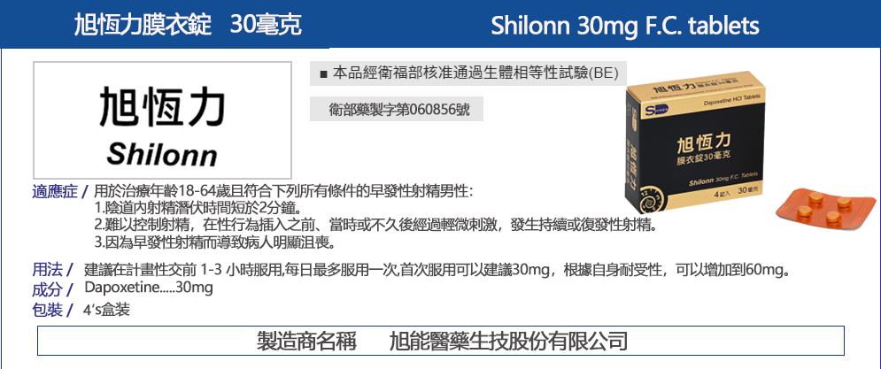 (相當於 Dapoxetine 30mg)