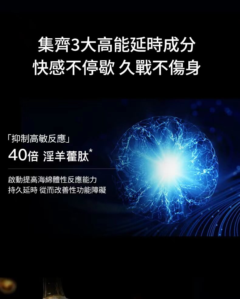 | 核心功效 | 增加持久力、改善敏感、延長親密時間至30分鐘以上 |