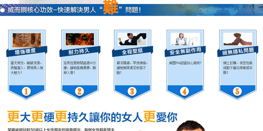 【適用人群】:成年男性性欲減退者、房事時間短。早洩患者。使用本品時間長者,可使陰莖第二