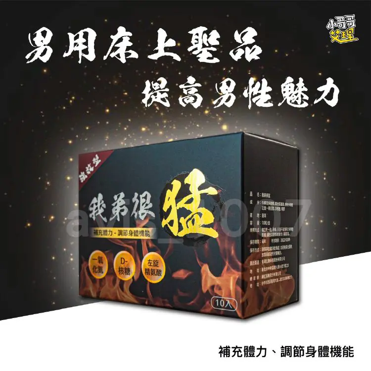 【我弟很猛】成分中使用了具有強身健體的牛樟芝多醣體、調解生理機能增強體力的精氨酸,以及能夠提升血液循環的綜合胺基酸,讓男人可以一次滿足提升身體機能、盡情享受性生活的樂趣。可以幫助有在健身運動的男性,給予身體能量的補充,增加男性整體戰鬥力。獲得三大國際認證:日本藥監方、台灣衛福部、食品級認證,SGS檢驗合格證書,完全可以當做保健品去吃可以安心食用!我弟很猛是一款食用級男性壯陽產品,顧客也可以當作保健品來使用。