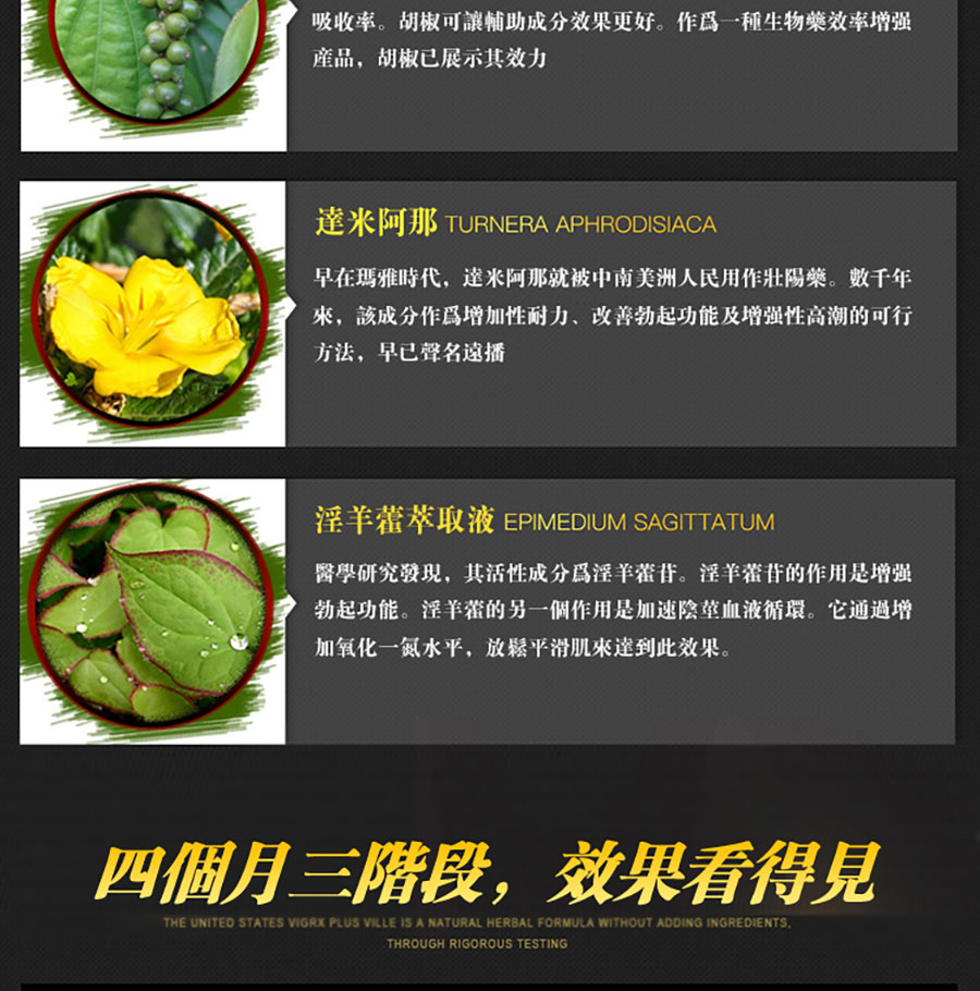 3、新鮮優質的原料:正確的配方,優質的原料,新鮮天然的成分,才能發揮最好的效果,提升男性的自尊、自信和生活質量。