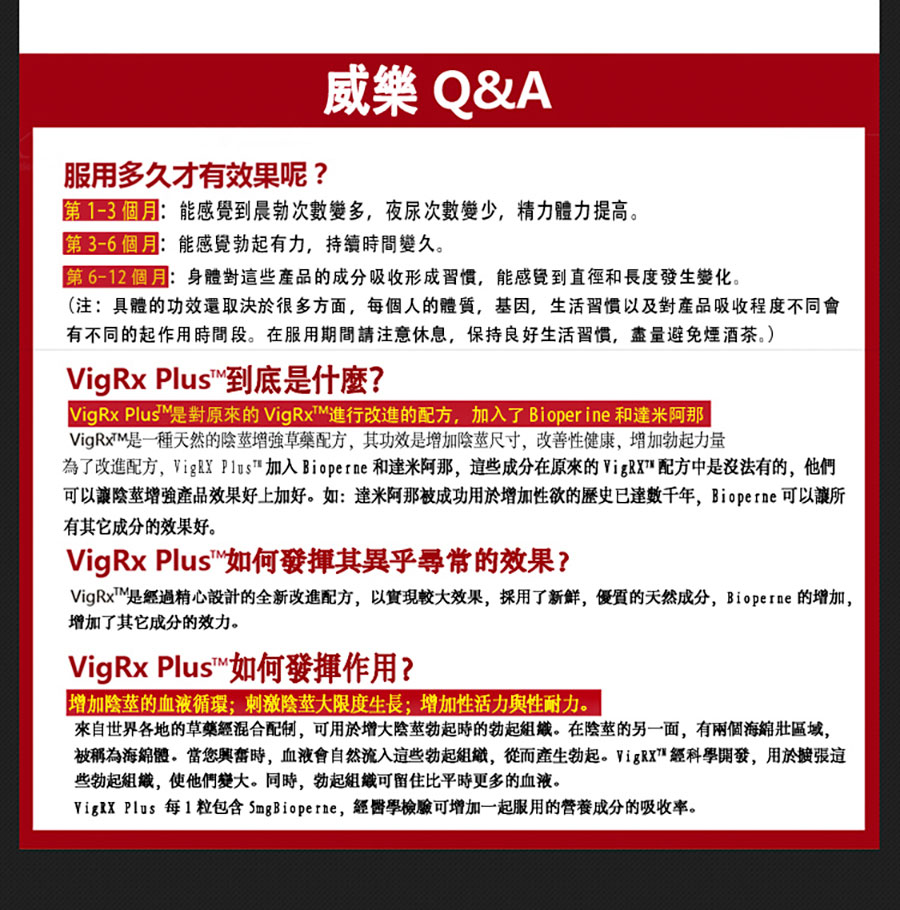 2、精良搭配比例:VIGRX PLUS威樂的每一種成分都是搭配用量,堅持使用頂級原料,絕不使用劣質材料,按照配方成分配比,保證用戶的使用效果。