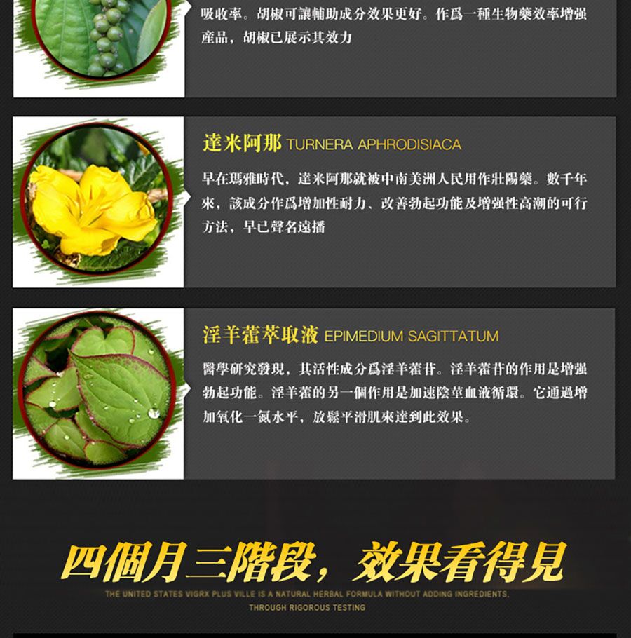 - 主要成分:淫羊藿、達米阿那、韓國紅參、胡椒提取物等