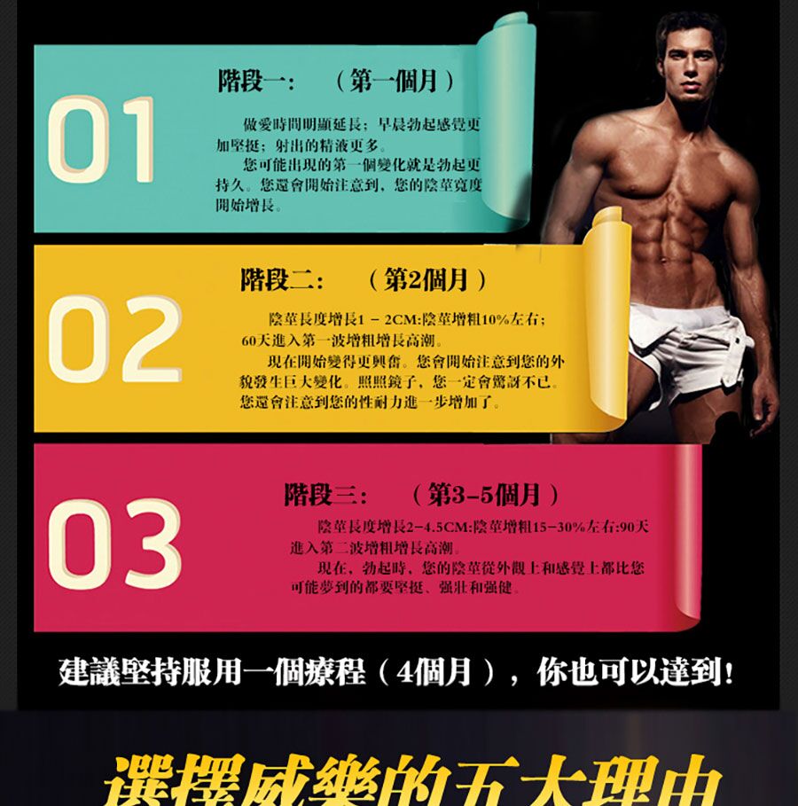 - 四個月三階段,效果看得見:從延長時間到顯著增長,按月見證驚喜變化,讓您重新定義自我。