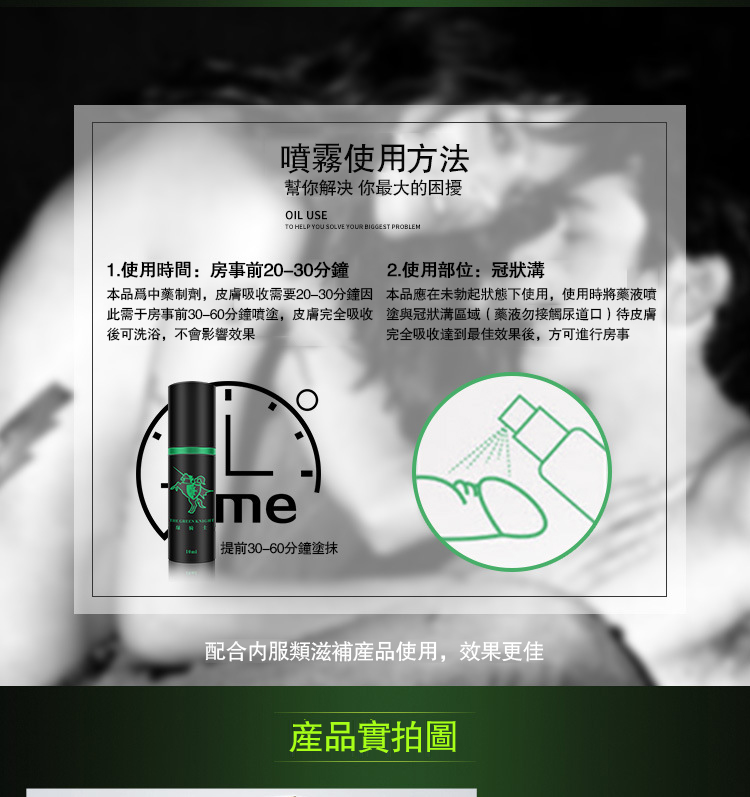 首次體驗綠騎士持久液?建議噴灑2下即可,漸進式增加用量,避免過量。