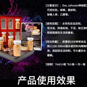 【用 法】:房事前5分鐘取本品3-5ml溶于開水,咖啡啤酒或飲料內稀釋飲用
