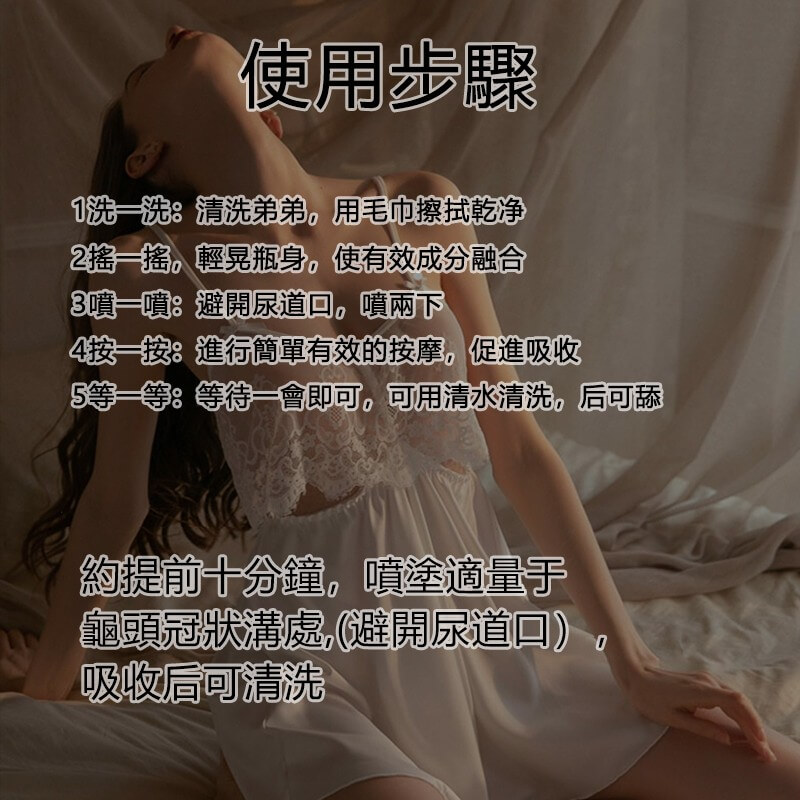 2.請在房事前10-20分鐘取出川井噴劑,噴塗在龜頭冠狀溝處,然後輕輕按摩3分鐘,等液體充分吸收後即可進行房事。