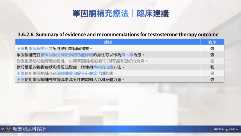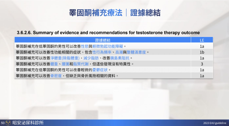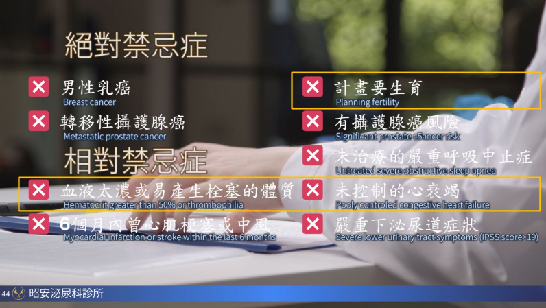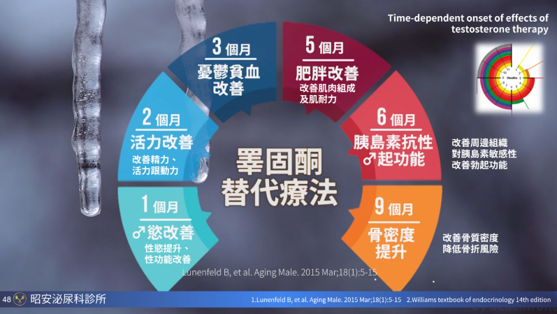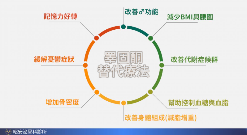 適用於男性因睪酮不足所引起的各種症狀,包括: