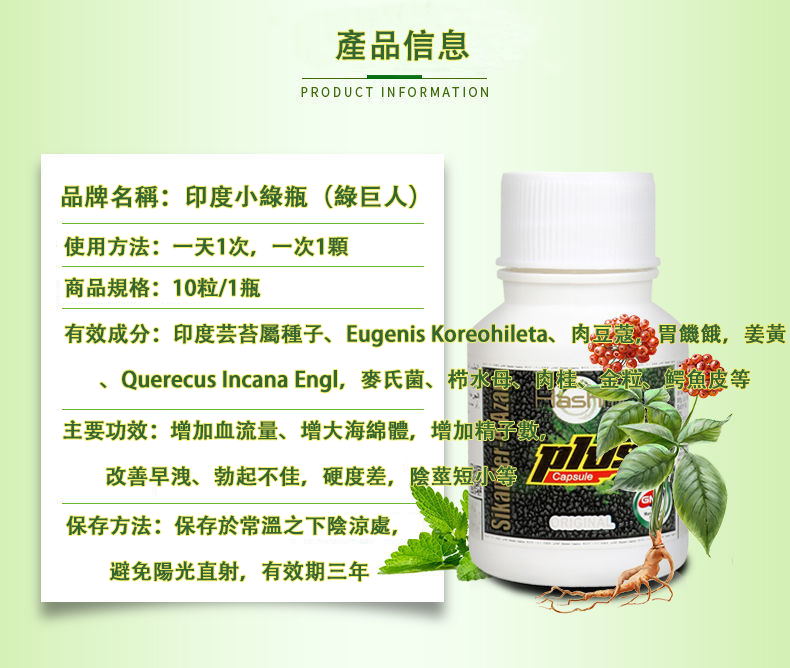 印度小綠瓶 Sikander-e-Azam Plus 綠巨人增大丸丨1瓶10顆