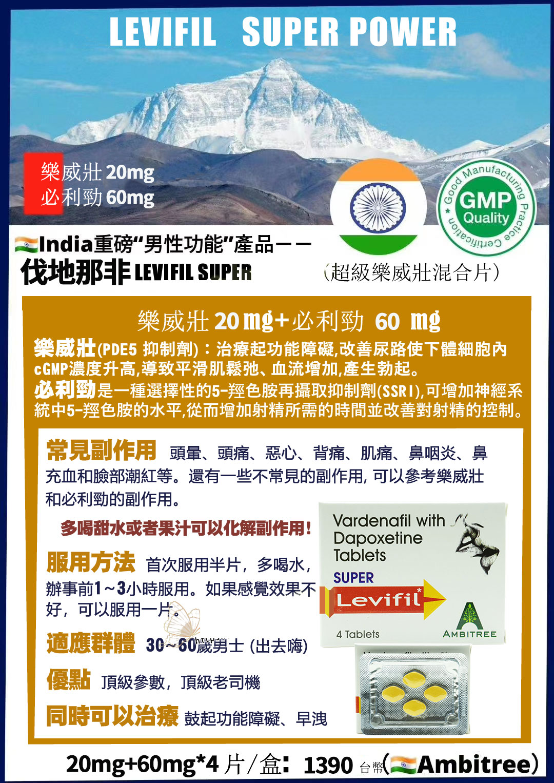 雙效樂威壯 Super Levifil 80mg|強效助勃+延時 4粒裝