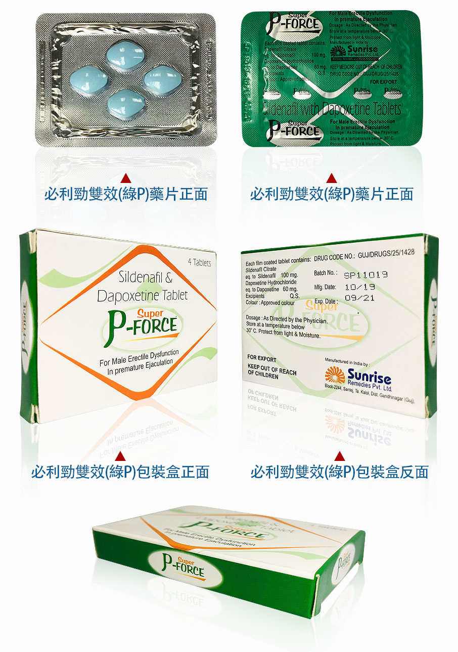 綠版必利吉 Super P-force 是一款結合助勃與延時雙重功效的壯陽藥。它含有100mg的西地那非(Sildenafil)和60mg的達泊西汀(Dapoxetine),這兩種成分能夠有效解決勃起功能障礙(ED)和早洩(PE)的問題,是一款集增硬、持久和延時於一體的雙效藥物,深受全球男性用戶的青睞。