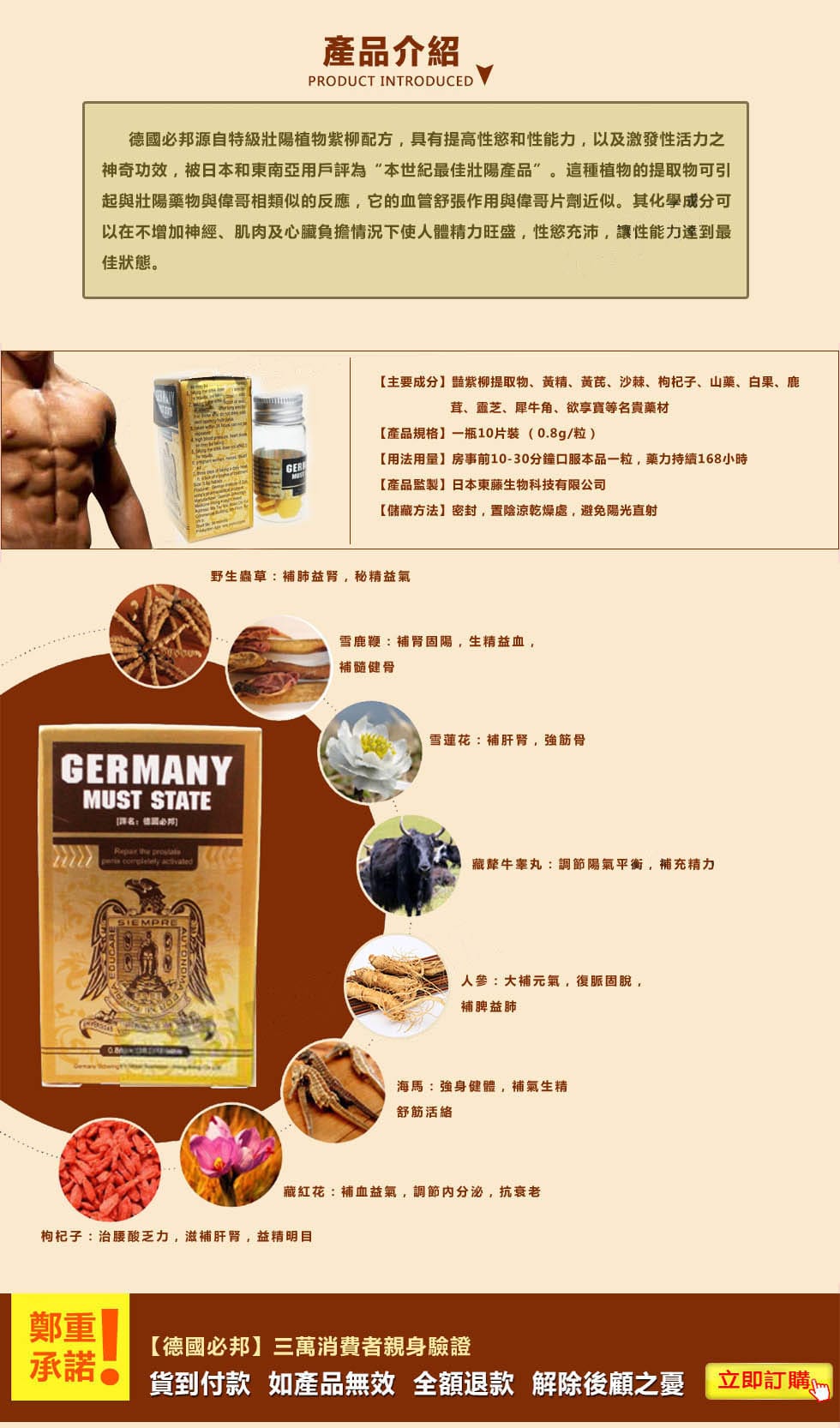 德國必邦于2013在美國上市販售,一上市就獲得超強超好效果的高度評價!經過多年年的市場開拓與臨床試驗,德國必邦中「靶向活性肽」針對男性陽痿 不舉症狀、早洩不持久、陰莖短小的男性有特效,故在2016在台灣地區成立進入台灣官方連鎖藥局販售,請認準本網『』是台灣唯一正品販賣中心!