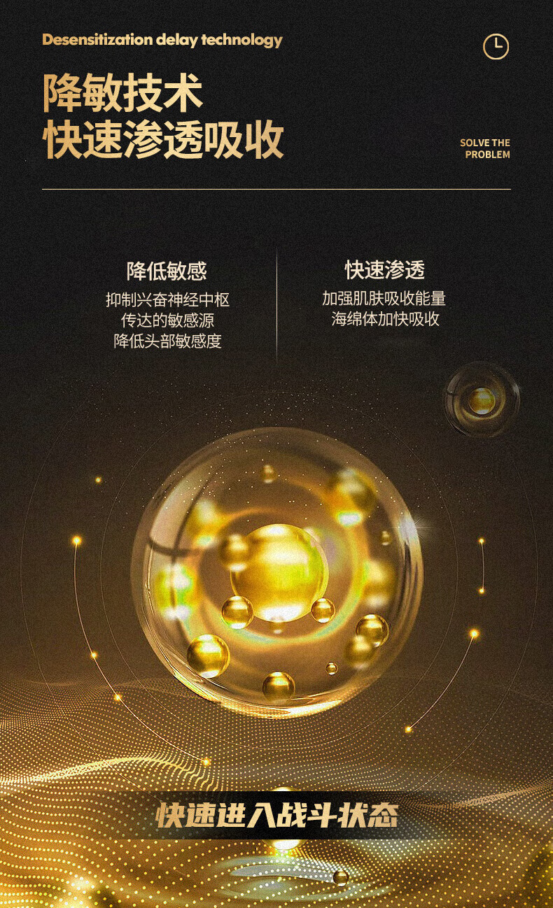 其核心成分苯佐卡因可有效降低陰莖表面敏感度,延遲射精時間,讓性愛過程更加持久且充滿激情,幫助解決早洩煩惱。