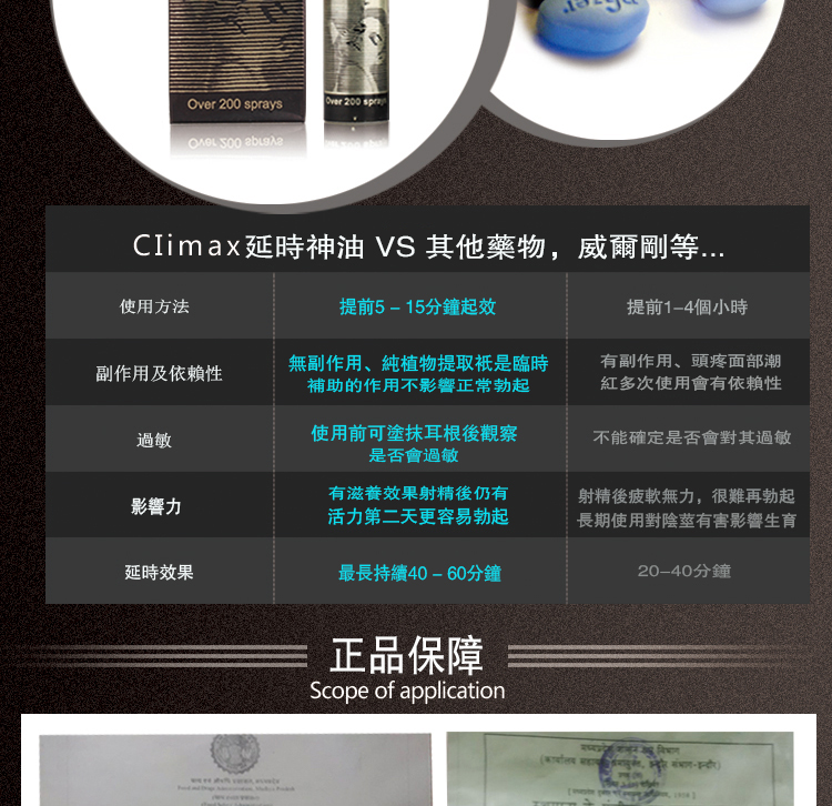 Climax 持久噴劑採用天然成分,確保了長期使用的安全性,沒有副作用,您可以放心長期使用。