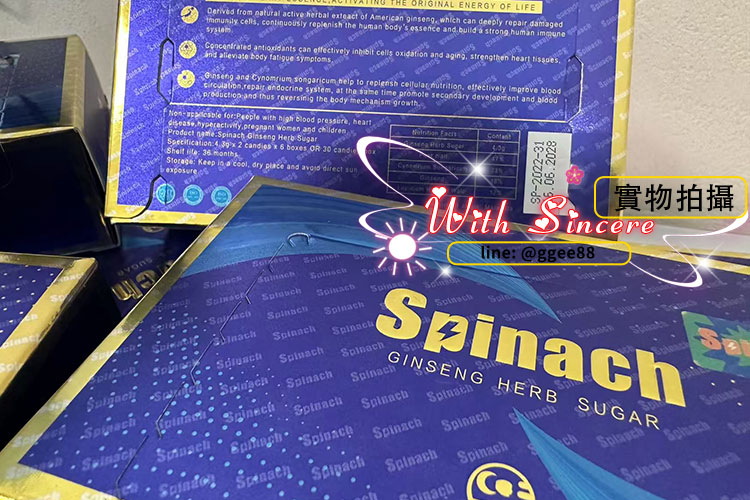 汗馬糖 Spinach 金糖是汗馬品牌第4代強效配方,專為現代男性設計的草本精力補給食品。嚴選鎖陽、人參、紫瑪咖、石榴多酚等天然植物,結合ALS實驗室認證的科學製程,實現「補腎壯陽 × 提升活力 × 無副作用」的三重功效。