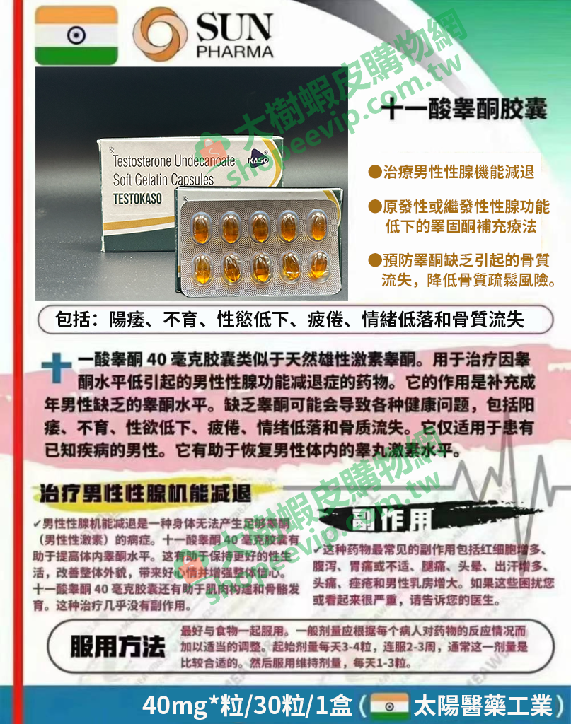 - 商品名:Testokaso 40mg 十一酸睪固酮素軟膠囊