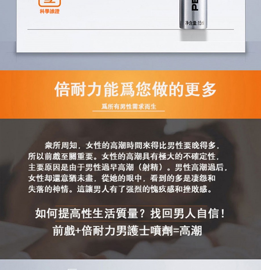- 本品為中藥配方,主要原料為蛇床子提取物、丁香提取物、紫霄花提取物、桂皮提取物,採用現代生物製劑技術和純天然中草藥配方精製而成,可有效的防止早瀉,改善體質功效。