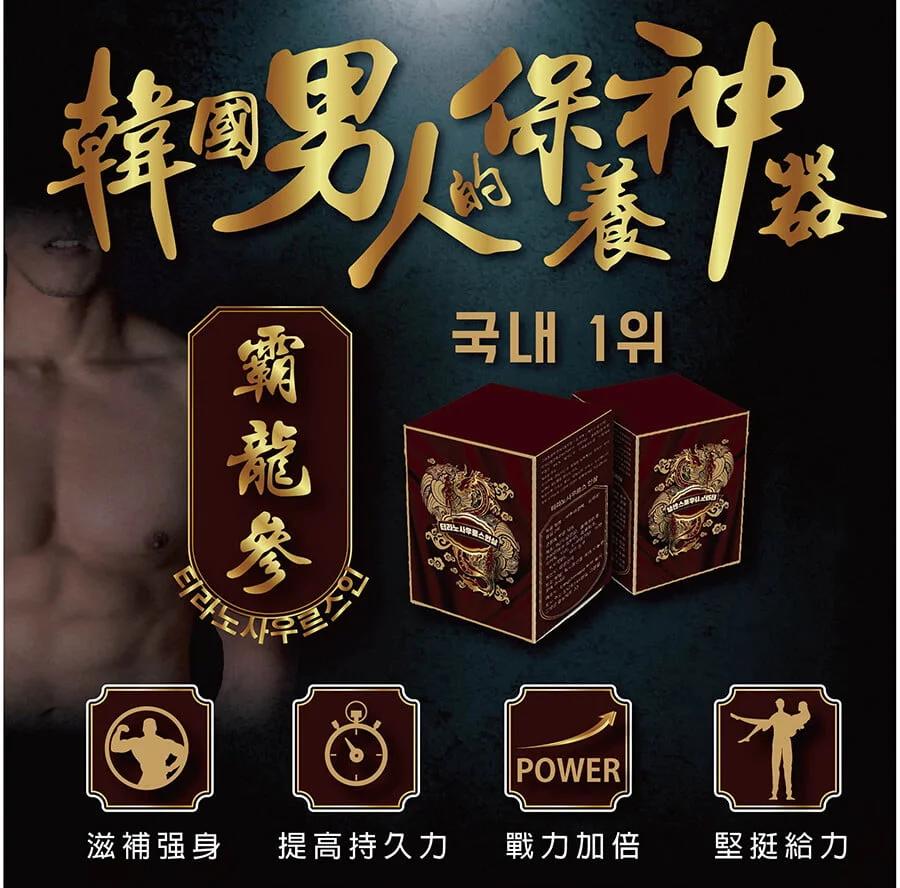 霸龍參在韓國男性保健市場上備受追捧,成為韓國男性最青睞的壯陽保健食品。