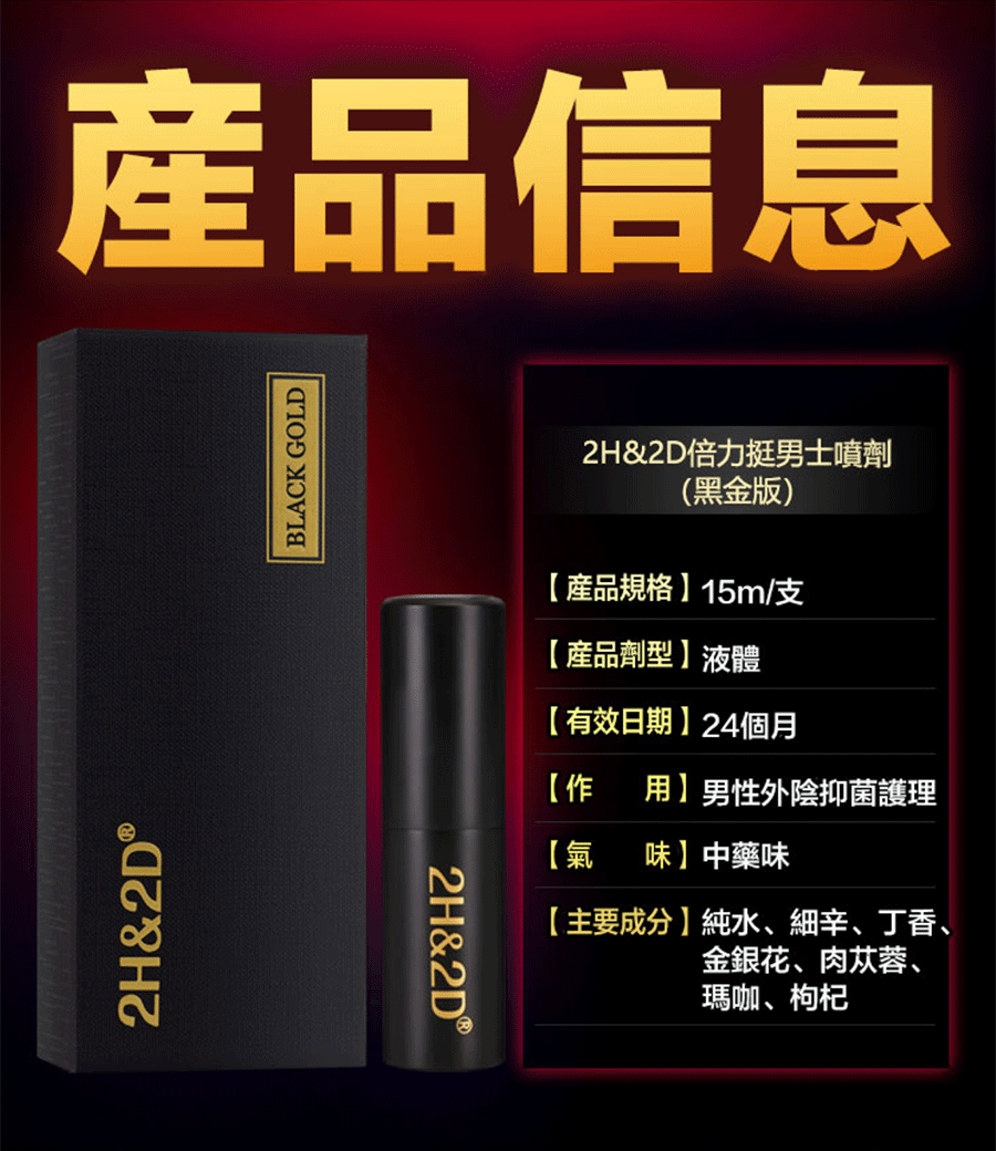2H2D 黑金版延時液,延續丸榮集團的藥學專業技術,使用時不造成區域性麻痺感,更不會影響體感與射精能力。不論是因心理壓力還是過度敏感導致的早洩困擾,都能透過這款外用型植物萃取配方,有效幫助延長性愛時間,同時保留快感——讓你更加從容面對每一次的親密接觸。