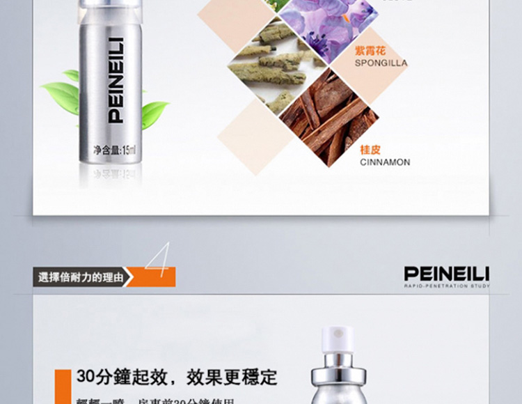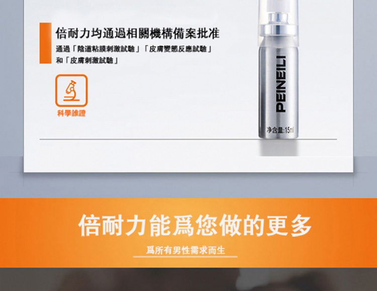 - 商品名稱|PEINEILI 倍耐力男用持久液噴劑