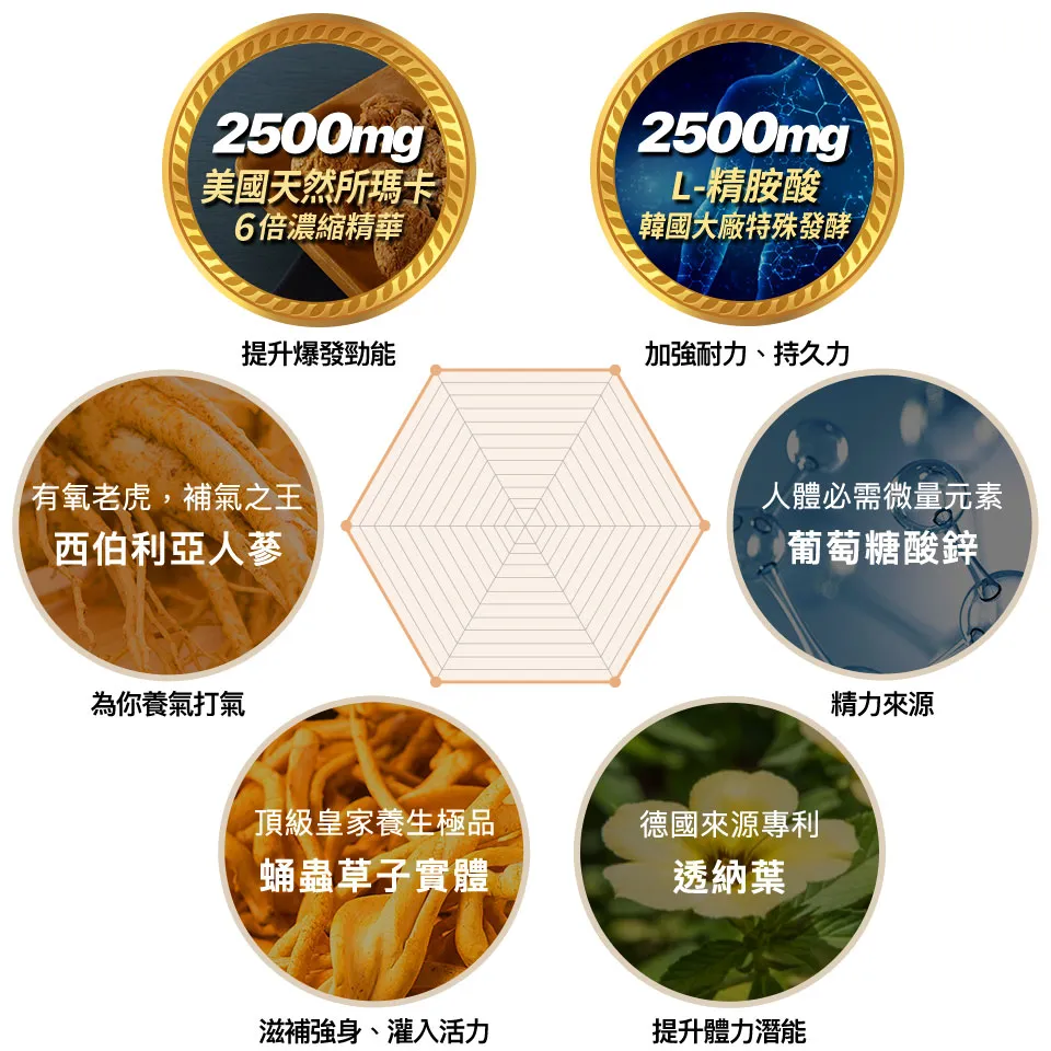 - 2500mg馬卡!美國銷量NO.1六倍濃縮!調整體質,重現Man power