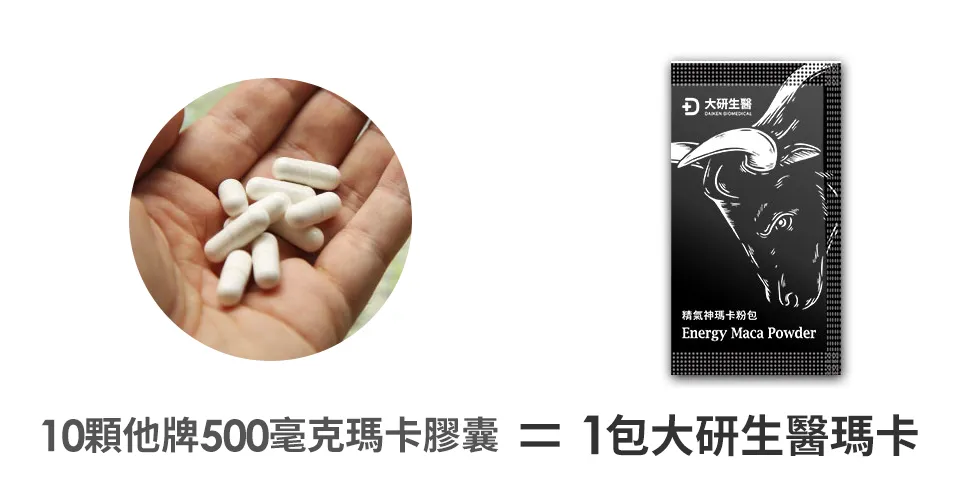 一包大研精氣神瑪卡就能達到有效劑量,不用天天吃一大把膠囊